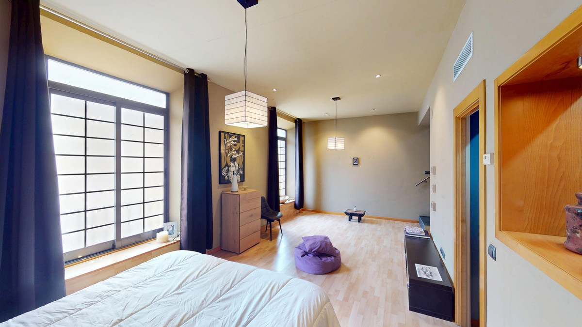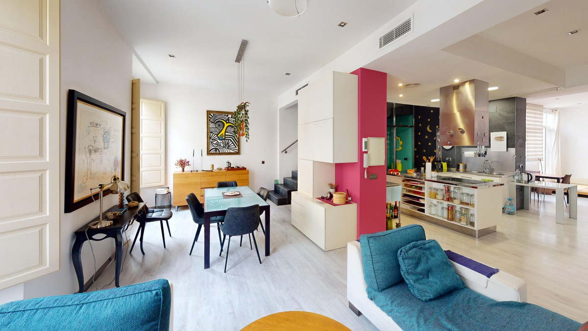 In the very heart of Málaga, just steps from the emblematic Plaza de la Merced, this exceptional four-storey townhouse with solarium offers 330 m2 of built space and an extraordinary level of versatility in one of the citys most sought-after locations. The ground floor is currently arranged as an office-style space, but its true value lies in its flexibility. It can easily be transformed into a generous living area, a private office, a gym, a garage, or a combination of uses, adapting perfectly to both residential and mixed lifestyle needs. The second floor forms the social heart of the home, featuring an industrial-style kitchen that flows seamlessly into the living and dining areas. On this level there is also a separate space, currently used as a chill-out area, with access to a small terrace, as well as a convenient guest toilet. The third floor is dedicated to the main suite, offering a spacious bedroom, a large walk-in wardrobe and an elegant en-suite bathroom. From here, there is direct access to a well-sized private terrace, ideal for enjoying Málagas climate in total privacy. On the fourth floor, a second bedroom with en-suite bathroom and ample wardrobe space provides comfort and independence. This level also offers the possibility of enlarging the space thanks to the mansard-style roof, adding further potential to an already impressive home. Crowning the property is a spectacular solarium with open city and mountain views. This rooftop space includes a covered area with a well-equipped kitchen, making it perfect for entertaining, relaxing or enjoying sunsets over Málaga. The house is prepared for the installation of a lift, with the built shaft already in place, and features air conditioning in every room, ensuring comfort throughout the year. A unique property combining space, character and potential in a prime central location, ideal as a distinctive private residence or a high-value investment in Málaga city centre. We are pleased to be able to present this dream property to you soon, either personally or via virtual viewing. Because this world is unique - just like our Axarquía. In Andalusia. On the Costa del Sol. Here, on the sunny side of life...