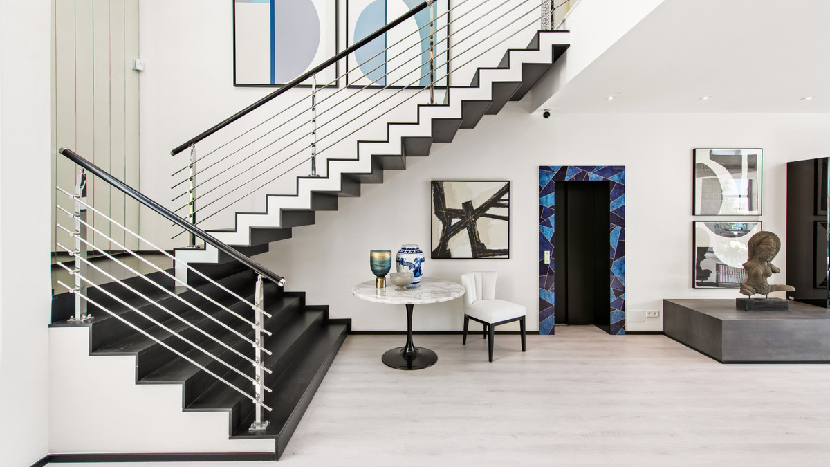 The property is distributed over 4 levels connected by a lift and an ultra-modern staircase. It consists of 4 bedrooms and 4 bathrooms in suite, all equipped with bath with hydromassage and separate shower, as well as a guest toilet, a huge living room, and a fully-fitted black and white kitchen with an island/breakfast area and exit to an al fresco dining terrace.