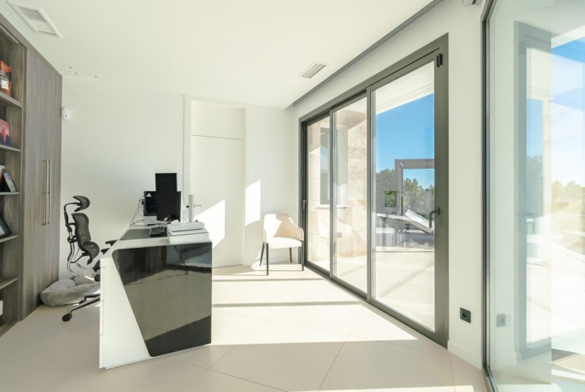 Outdoors, the property impresses with a stunning private swimming pool, generous sun-drenched terraces, and beautifully landscaped garden areas, perfect for entertaining guests or relaxing under the Andalusian sun. The villa also includes private parking, a security system, and every amenity required for a truly luxurious lifestyle.