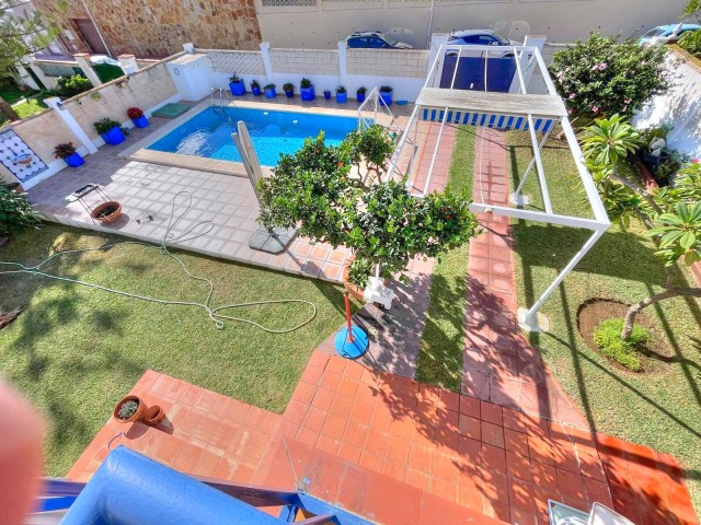 Outside, the property has a pleasant private garden with a swimming pool, a garage and a roof terrace with views, perfect for enjoying the excellent climate of the Costa del Sol.