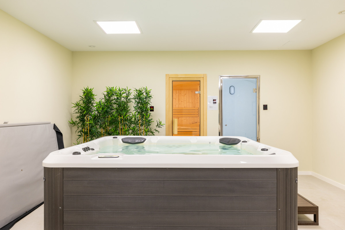 The homes include spacious terraces, with many offering sea views, and some feature private garages with direct access to the property. Residents can enjoy excellent communal areas with landscaped gardens, a swimming pool, gym, sauna, and a social-gourmet lounge.