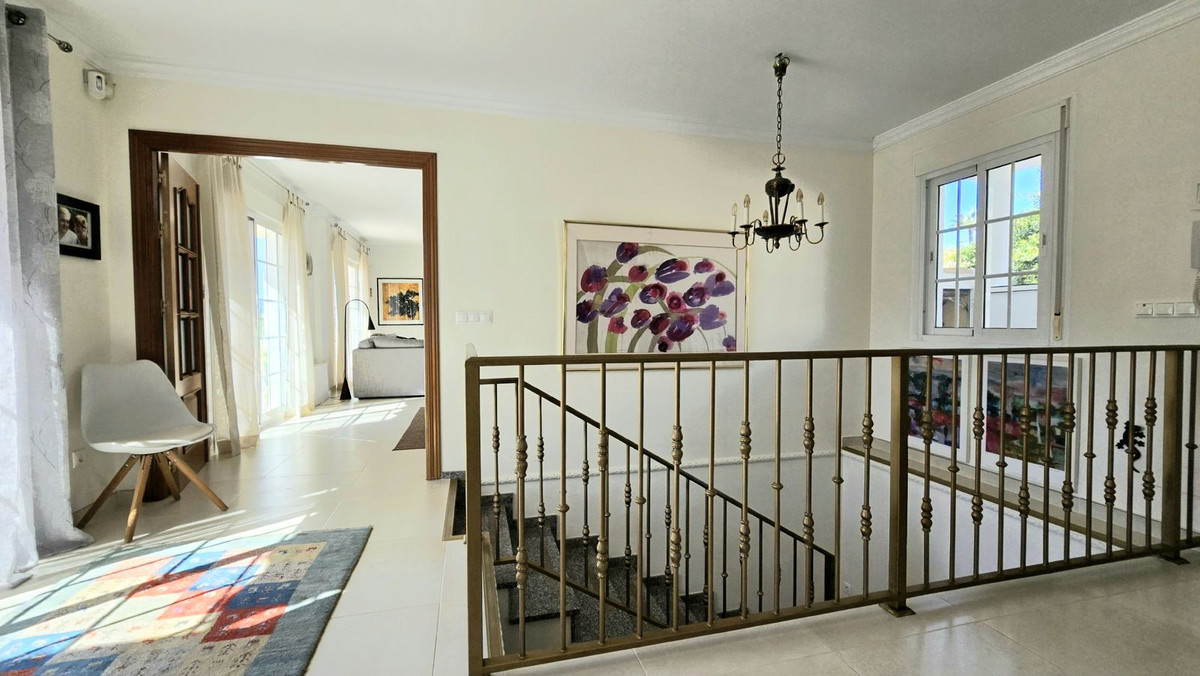 Enter the property to a large bright landing. To the left is an office , easily turned into a 5 th bedroom. This level also has a WC to service the first floor. On the far right corner is a large kitchen with very modern appliances and american fridge, granite sink and work tops. The kitchen also has access to the lower floor and leads out to the large covered terrace with, glassed cortina curtains, utilizing the area for all seasons. amazing 280 degree views, tastefully decorated and furnished to a high standard with an 8 seating dining area with snook seating for relaxing and taking in the view. This area alsoboasts a indoor Broil King double BBQ with elctric chimney oven extracter.