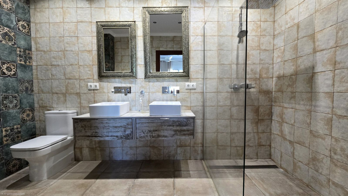On this floor there are 4 good sized bright bedrooms with fitted wardrobes. The master and the junior master boast en- suite large bathrooms with full access to the garden and pool by large patio double glazed doors. The master also has a walk in wardrobe. Also on this level is the main bathroom with dual sinks, All bathrooms are equipped with under floor heating and each are individuly desgned.