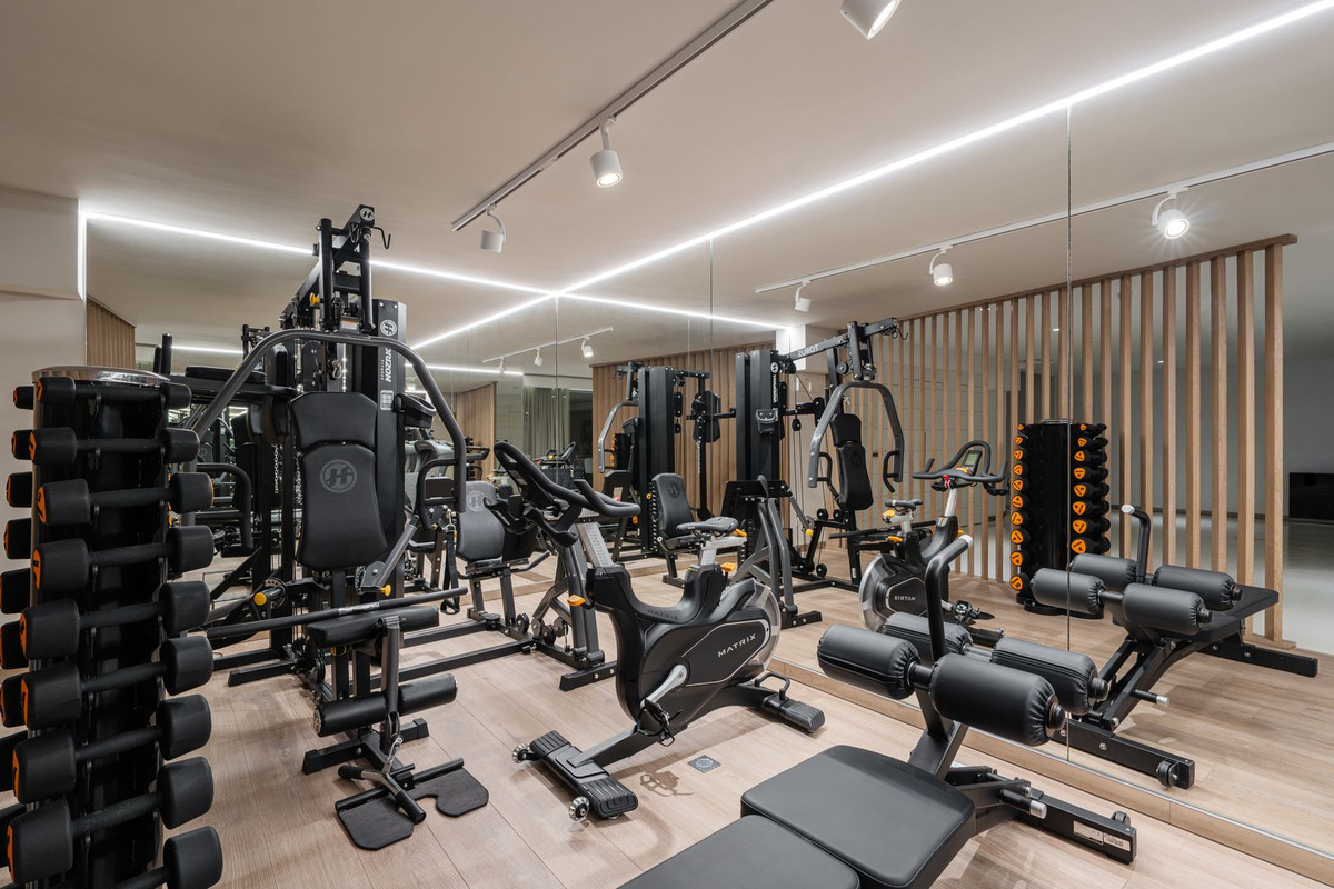 This is a house for people who value flow. The lower level handles leisure properly — entertainment room with bar, cinema area with projector, gym and sauna — so the living floors remain clean and composed. Upstairs, the kitchen, dining and living space opens directly onto the terrace, where the pool meets the line of the sea rather than competing with it. Light, proportion and modern design do the heavy lifting; nothing here asks for attention, yet everything earns it.