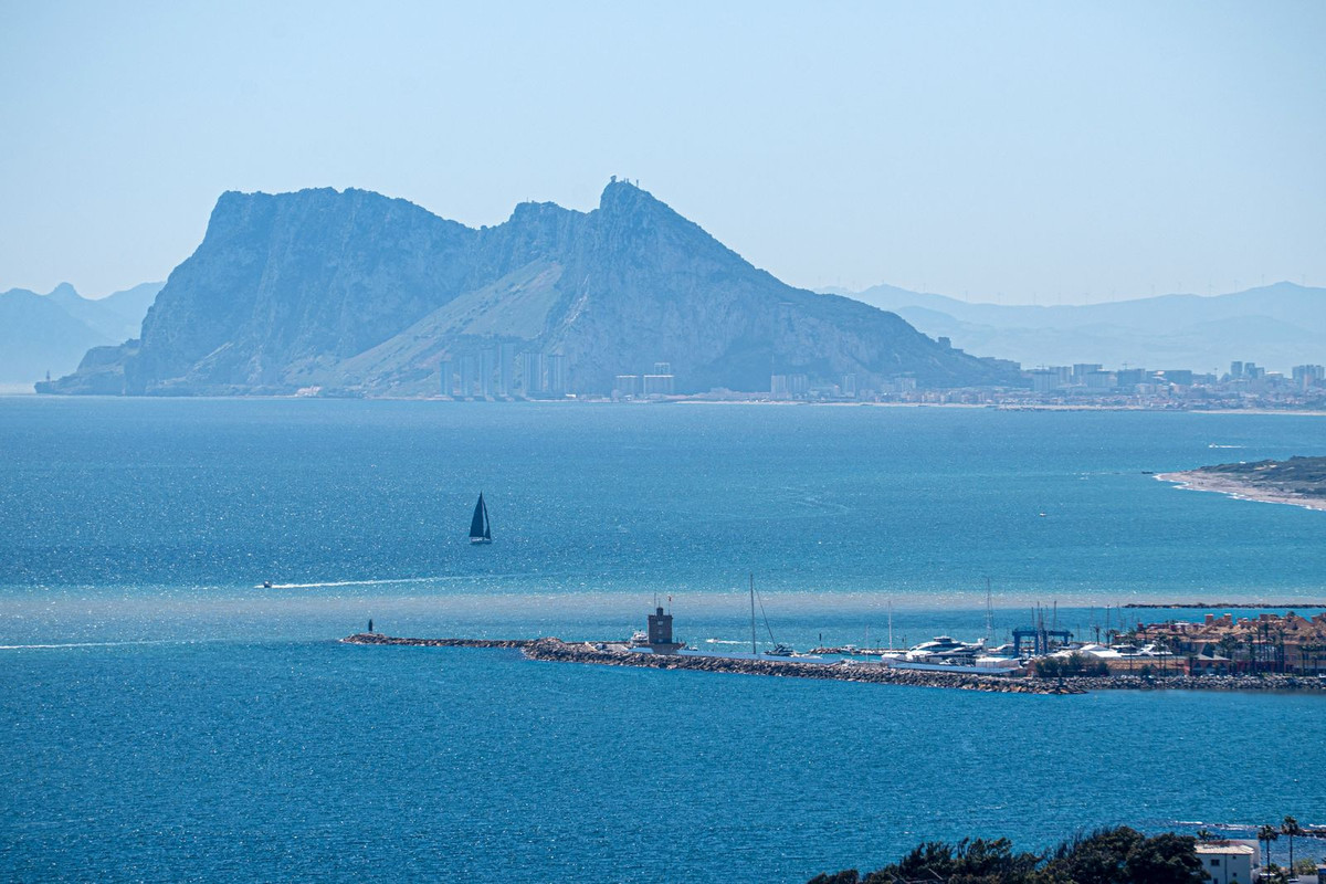 As one of the best houses on the complex, this townhouse offers a total of 4 bedrooms and 3 bathrooms. The private garage with two parking spaces leads directly into the house and the converted basement, which offers plenty of practical storage space. On the ground floor is the main entrance, the customized, open-plan designer kitchen with state-of-the-art equipment, a guest toilet and the living and dining area with wonderful views of the sea and Gibraltar. In the garden area, the south-facing orientation allows you to enjoy countless hours of sunshine on the terrace or in the private infinity pool.