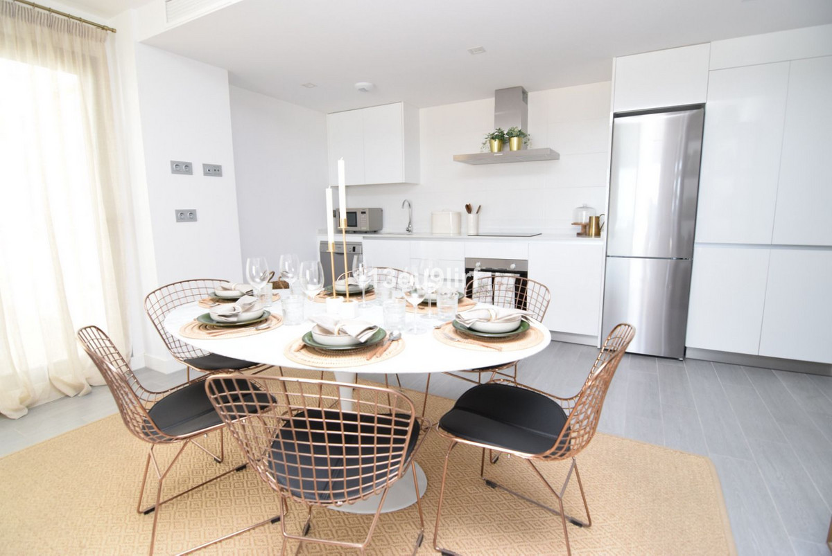 Located just minutes from the heart of the picturesque white village of Benalmádena Pueblo, this spacious luxury apartment offers the perfect blend of tranquility and convenience. Enjoy peaceful surroundings while remaining within easy reach of charming shops, cafés, restaurants, and local amenities. The property features a bright open-plan kitchen, living, and dining area, a master bedroom with en-suite bathroom, and two additional bedrooms that share a second full bathroom. Outdoor living is exceptional, with a large, partially covered front terrace boasting stunning panoramic sea views, as well as a smaller rear patio. Additional comforts include central hot-and-cold air conditioning in the living room and all bedrooms, plus an underground parking space for two cars and a storage room. The secure, gated community offers excellent shared facilities such as a swimming pool, gym, and social room—making this an ideal home or holiday retreat. Transaction subject to Property Transfer Tax (7%).