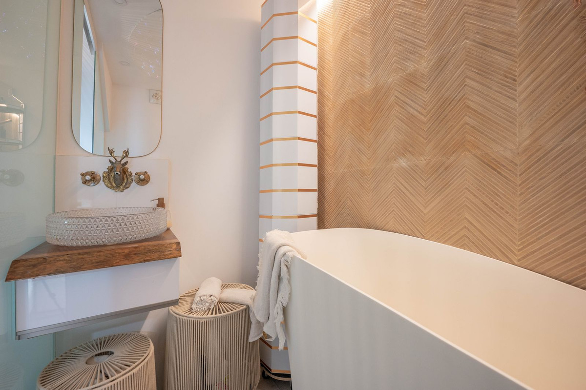 Comfort is guaranteed year-round thanks to underfloor heating, while the kitchen is equipped with a premium steam oven for modern, healthy cooking. The bathroom includes a luxurious Japanese soaking tub, adding a spa-like experience rarely found in properties of this size.