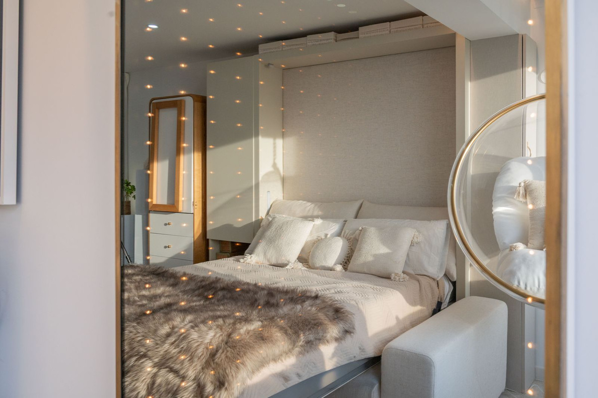 Every centimetre of the studio has been intelligently utilised, offering extensive built-in storage solutions that maximise space without compromising on aesthetics. The interior blends functionality with boutique design, creating a refined and highly liveable environment.
