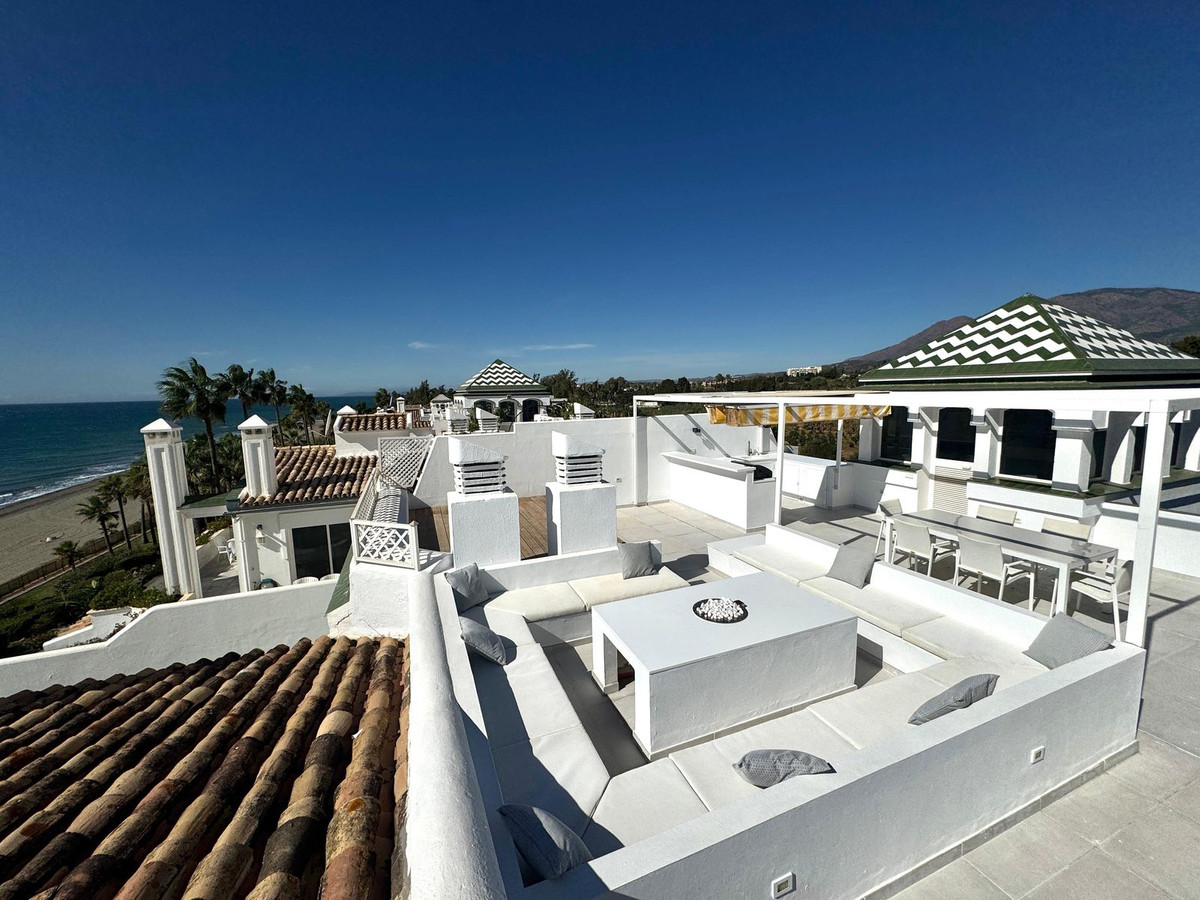 This exclusive frontline duplex penthouse is located within the prestigious Dominion Beach development, one of the most sought-after residential areas in Estepona. Positioned just 50 metres from the sea, the apartment offers a unique setting with immediate proximity to the beach and an exceptional Mediterranean lifestyle.