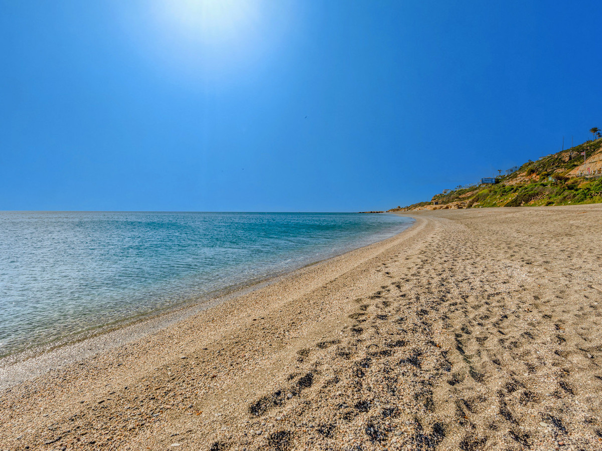 Town House for sale in , Manilva with 3 bedrooms, 2 bathrooms and with orientation south/east, with communal swimming pool, private garage (1 parking spaces) and private garden. Regarding property dimensions, it has 142 m² built and 25 m² terrace. Has the following facilities front line beach, amenities near, transport near, air conditioning, fully furnished, fully fitted kitchen, utility room, marble floors, basement, security entrance, double glazing, guest toilet, private terrace, living room, covered terrace, gated community, garden view, beach side, close to children playground, close to sea / beach, close to golf, uncovered terrace, games room, glass doors, balcony, excellent condition, recently renovated / refurbished, close to shops, close to town, pets allowed, partial sea views, direct sea access and close to restaurants.