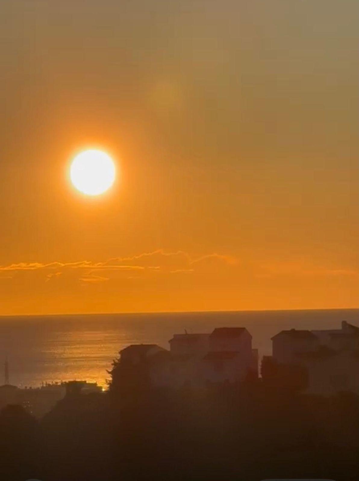 The main floor features a welcoming entrance hall, an independent kitchen, a bathroom with shower, and a spacious living room with fireplace and access to a sunny terrace with breathtaking coastal and mountain views