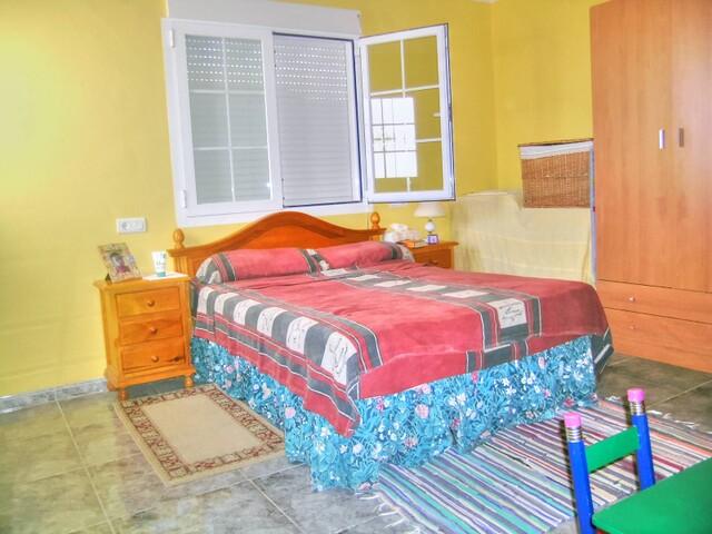 An elegant marble staircase leads to the upper floor, where the three bedrooms are located, all fitted with ceiling fans, tilt-and-turn windows with mosquito nets and blinds. There is also a full family bathroom. The master bedroom opens onto a private terrace, from which a metal staircase leads up to a spectacular roof terrace with 360-degree views.
