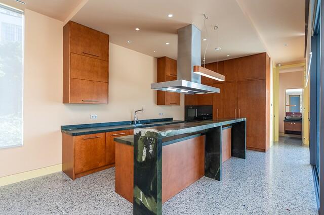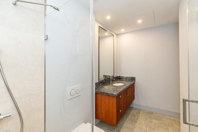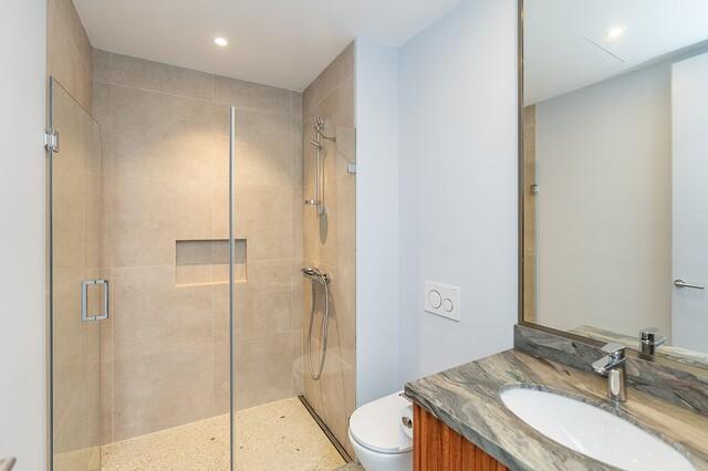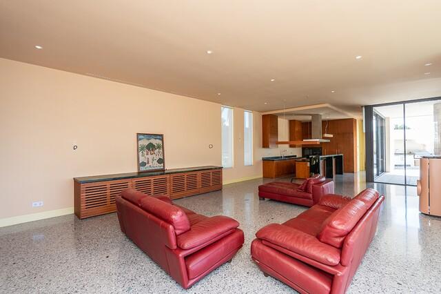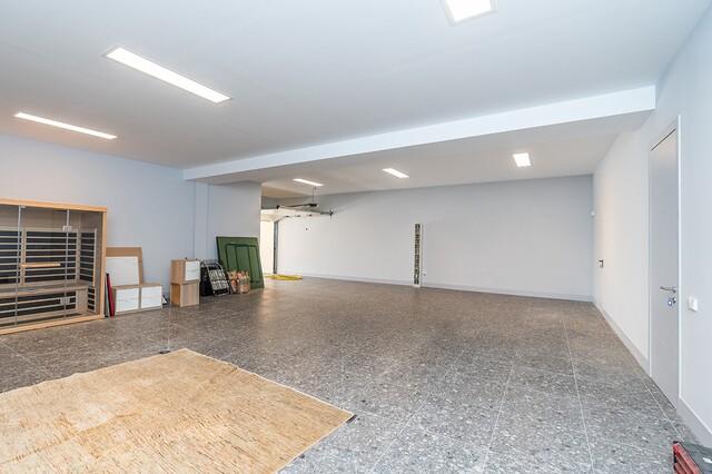The home is thoughtfully arranged over two levels. On the entrance level, you’ll find a private 1-bedroom guest apartment, two elegant en-suite guest bedrooms, a dedicated office, and a spacious 4-car garage with EV charging, along with ample storage and technical facilities.