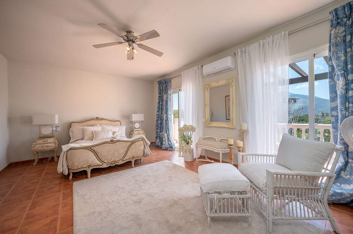 Beautiful detached villa in the outskirts of Coín set on a generous plot with a private pool and landscaped gardens, perfect for enjoying the Mediterranean lifestyle. Originally designed with 3 bedrooms, the property now offers 2 spacious bedrooms: one on the ground floor and an impressive master suite upstairs with a private terrace boasting stunning open views towards Mijas and Alhaurín El Grande.