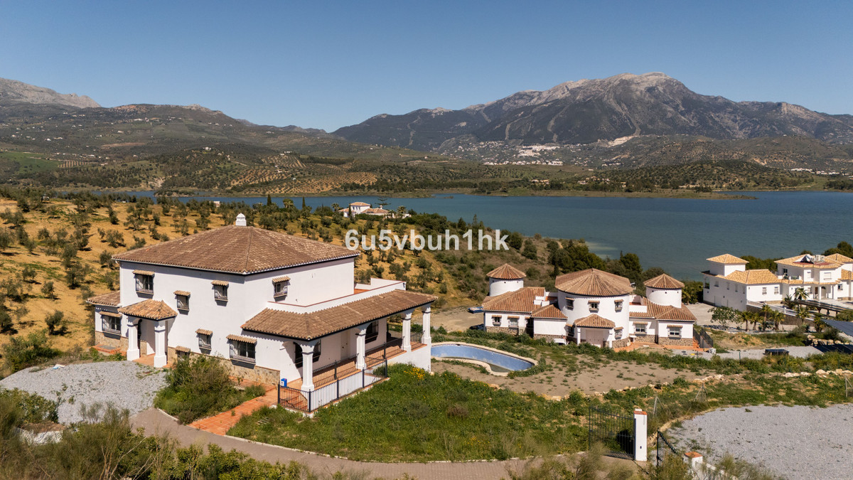 Some houses have a view. This one has a lake at its feet, a mountain range as its frame, and the kind of silence that changes how you breathe.An Andalucian-style villa with a modern soul, elevated above the shores of Embalse de la Viñuela — Málaga's largest reservoir — with uninterrupted water and mountain views in every direction. 400 m² of interior space. A fenced 4,230 m² plot. Six bedrooms, five bathrooms, multiple terraces, a pool, a large garage, and a fully independent guest apartment. The proportions are generous. The setting is quietly extraordinary.The top floor belongs entirely to the principal suite — less a bedroom, more a private world. Large en-suite with shower and jacuzzi. A substantial terrace looking straight out over the pool, the gardens, the lake, and La Maroma beyond. Nothing to interrupt it. Nothing ever will.The main floor is where daily life happens effortlessly. An open living, dining and kitchen space wraps around a fireplace and opens directly onto the front terrace — that seamless flow between inside and out that makes a house genuinely liveable. A side entrance into the kitchen keeps the rhythm easy. Three further bedrooms in the left wing: one en-suite with walk-through wardrobes and those same lake views, direct terrace and pool access; the other two sharing a generous family bathroom, both with fitted storage. A guest WC completes the level.Below, the house reveals its practicality without losing its character. Laundry room, playroom or storage, a double garage with space for motorcycles and more. And to one side, a fully self-contained apartment — two bedrooms, bathroom, kitchen, living room, large terrace doors to the pool, its own separate entrance. For family. For guests. For whoever needs their own space within yours.Throughout: sand-coloured marble floors and bathrooms, electric shutters on every window, centralised ducted heating and cooling.The seller has left the kitchens, solar panels, home automation and garden for the buyer to complete. Not because the house is unfinished — but because the best owners rarely want to inherit someone else's taste.The real luxury, though, is none of that.It is the light on the water in the morning. The mountains at dusk. The terrace lunches that run too long. Children growing up with space and air and freedom. A life with a more beautiful rhythm — and still thirty-five minutes from Málaga, twenty from the coast, forty from the airport.This is a family home for people who chose well.