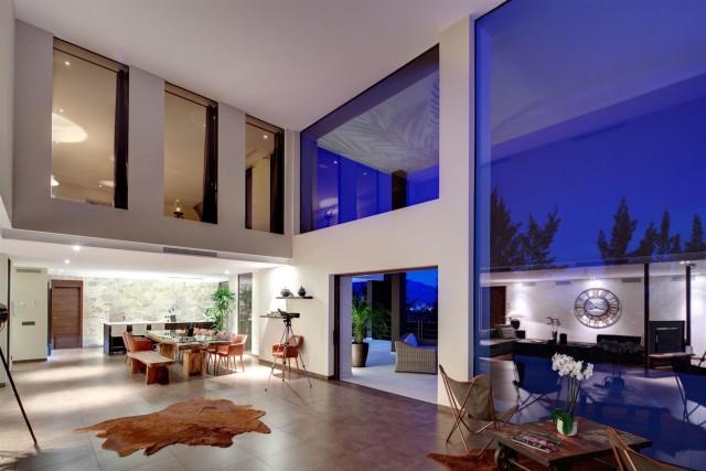 Modern style frontline golf villa Benahavis. Stunning south facing villa located in a quiet residential area offering 360º panoramic sea, golf and mountain views.