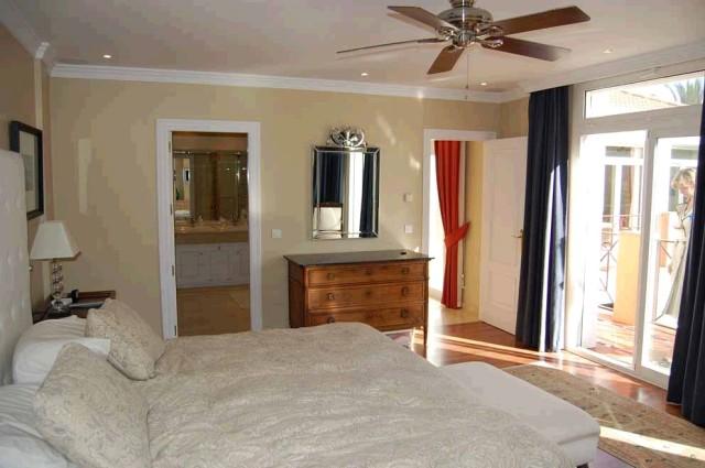 This magnificent south facing villa is located in a quiet residential area within 5 minutes drive to Puerto Banus and other amenities. The main features include private garden with swimming pool, air conditioning hot/ cold, marble floors, fully fitted kitchen, laundry room, 2 fireplaces, sauna, gymnasium, solar panels, barbecue area, double glazing, water tank, satellite T.V., alarm system, basement, safe, servants quarters, garage for 4 cars, storage and much more!