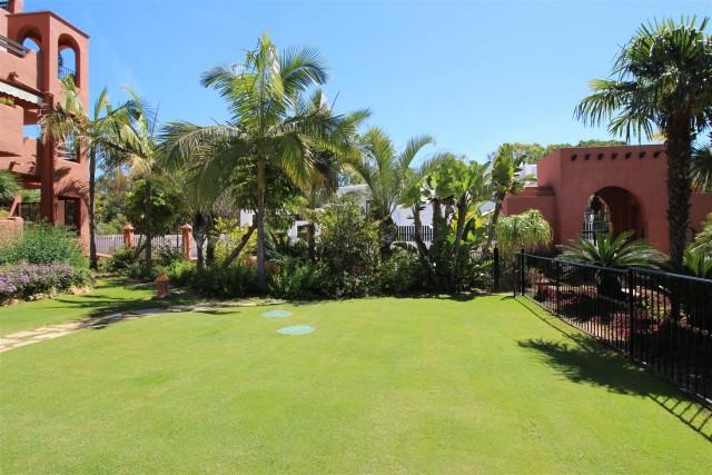 Elegant south facing ground floor apartment located in a private beachside urbanization in Estepona. Close to Puerto Banus, this apartment is offering magnificent communal gardens with swimming pool, and is within walking distance to the beach. The main features include spacious terraces, air conditioning hot/ cold, marble floors, under floor heating in bathrooms, fully fitted kitchen, laundry room, fireplace, Jacuzzi, garage, storage and it has nice garden and pool views.