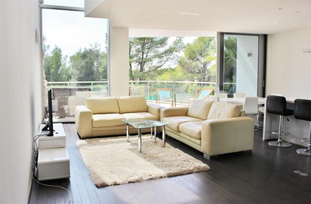 Exclusive modern townhouse for sale on the Marbella Golden Mile. Located in a prime position and boasting spectacular views over the Mediterranean Coast line, this prestigious property was recently finished and the complex have been awarded The Best Architecture Bentley Award and consists of only 58 private properties. The urbanization offers security, indoor pool, jacuzzi, gym and is surrounded by a pine forest. The property have 3 levels and is disributed as follows: - On the lower level: private garage with a laundry area. On the ground level open plan lounge with American kitchen leading on to the terrace with open sea views, guest toilet and additional guest quarters with a shower and private entrance. On the top level two en-suite bedrooms with large bathrooms, both with built in wardrobes and terraces, spacious and bright The property boasts domotics, underfloor heating throughout.