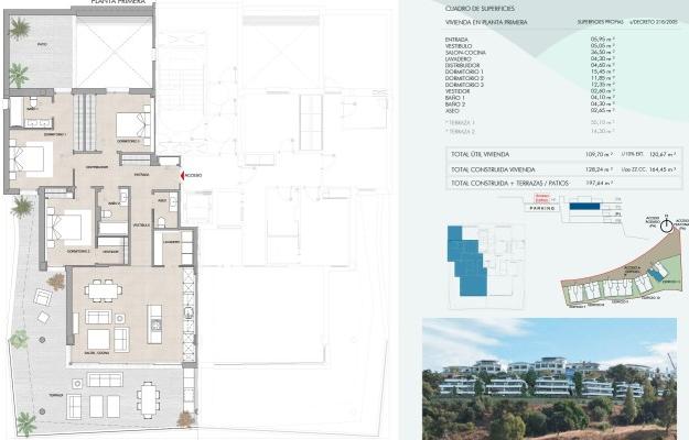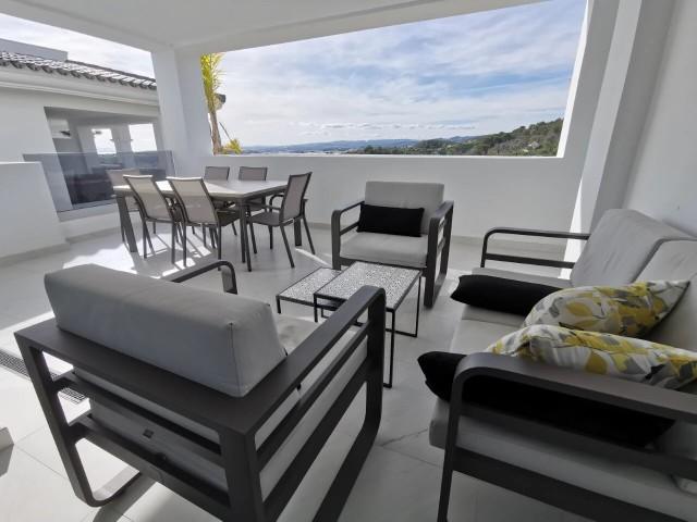 Apartment under construction located in one of the most privileged areas in Mirador de Estepona Hills, with 3 bedrooms. Located on the first floor it consists of more than 197m² built. It is organized with an entrance hall, a spacious and bright living-dining room with an open plan kitchen leading directly to more than 69m² of terrace. Enjoy the master suite with bathroom and dressing room, including fitted wardrobes, southwest facing with sea and mountain views.
