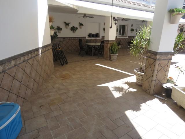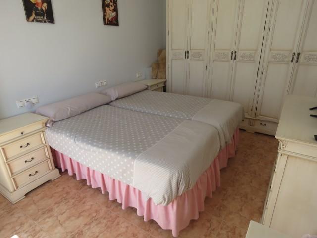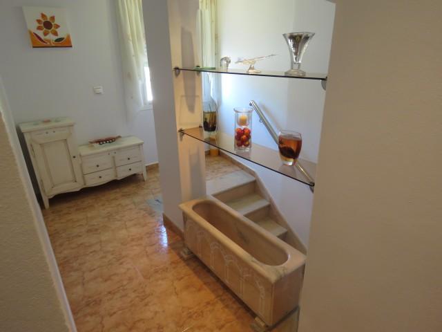 This villa located in the lower part on Calahonda has three bedrooms and 2 bathrooms. One of the bedrooms and bathroom are on the ground floor level. There is good size lounge with an independent dining room. The fully equipped kitchen leads out onto a very large private courtyard with pool. The extension of a fourth bedroom has started but needs to be finished. This area also has a small outdoor kitchen and separate WC. Lots of potential in a great location.