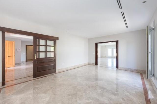 Frontline golf villa for sale in Marbella East. Elegant and spacious villa in the heart of the Golf course, with 6 bedrooms, 5 bathrooms, large completely flat plot, underfloor heating throughout the house, elevator shaft ready to be installed. The villa is very bright with a southwest orientation. In the basement it has a laundry area, a large living room with a kitchen, living room or office. and two rooms with bathroom. garage for 5 cars under cover and 3 places outside. The urbanization has 24 hour security. Very good opportunity!