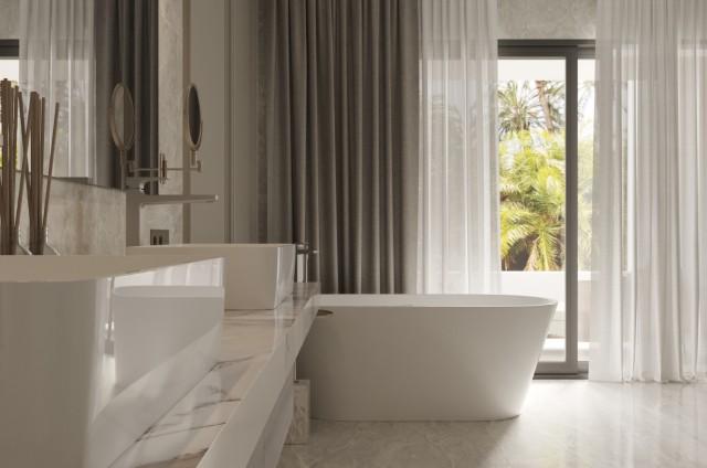 Beautiful designed living room contributes greatly to the prestige and standing of this luxurious mansion in Marbella. We’ve paid special attention to every detail and the selection of materials and its quality. Many internal elements make this contemporary home shine like a jewel. Large windows and sliding doors to the terrace areas allow generous light to flood the property.