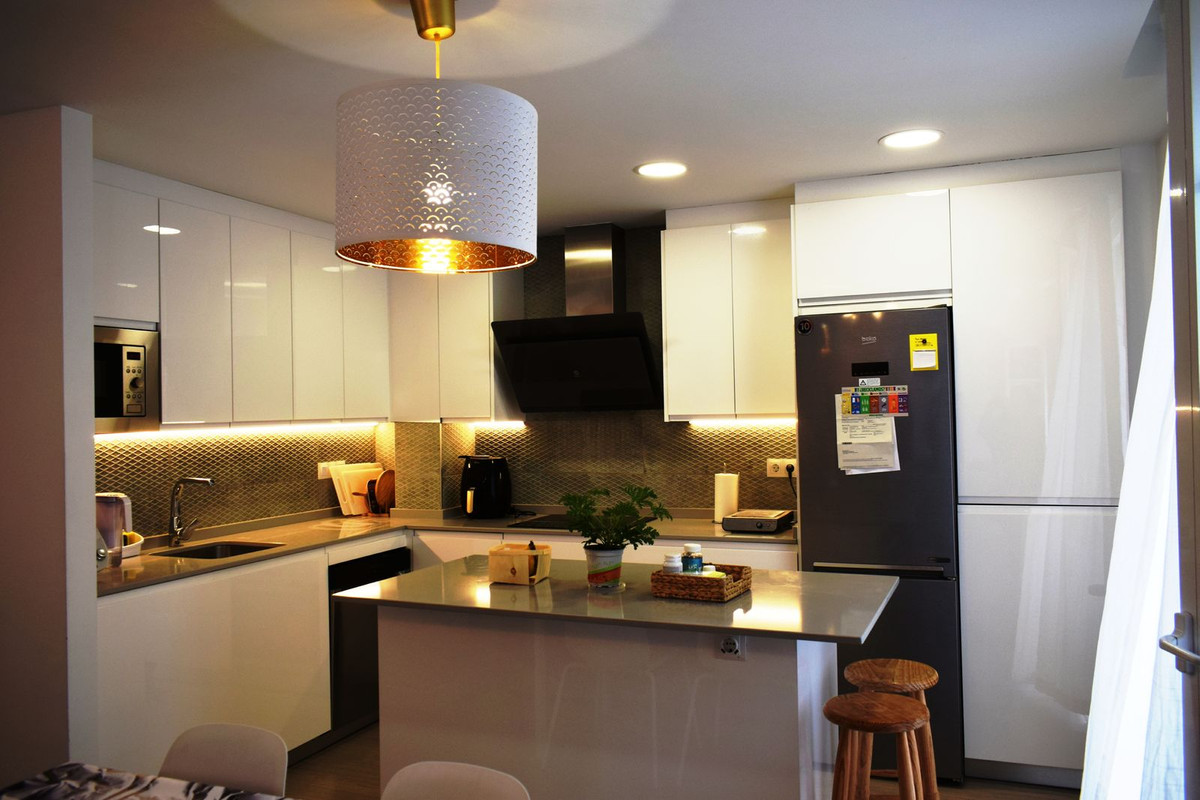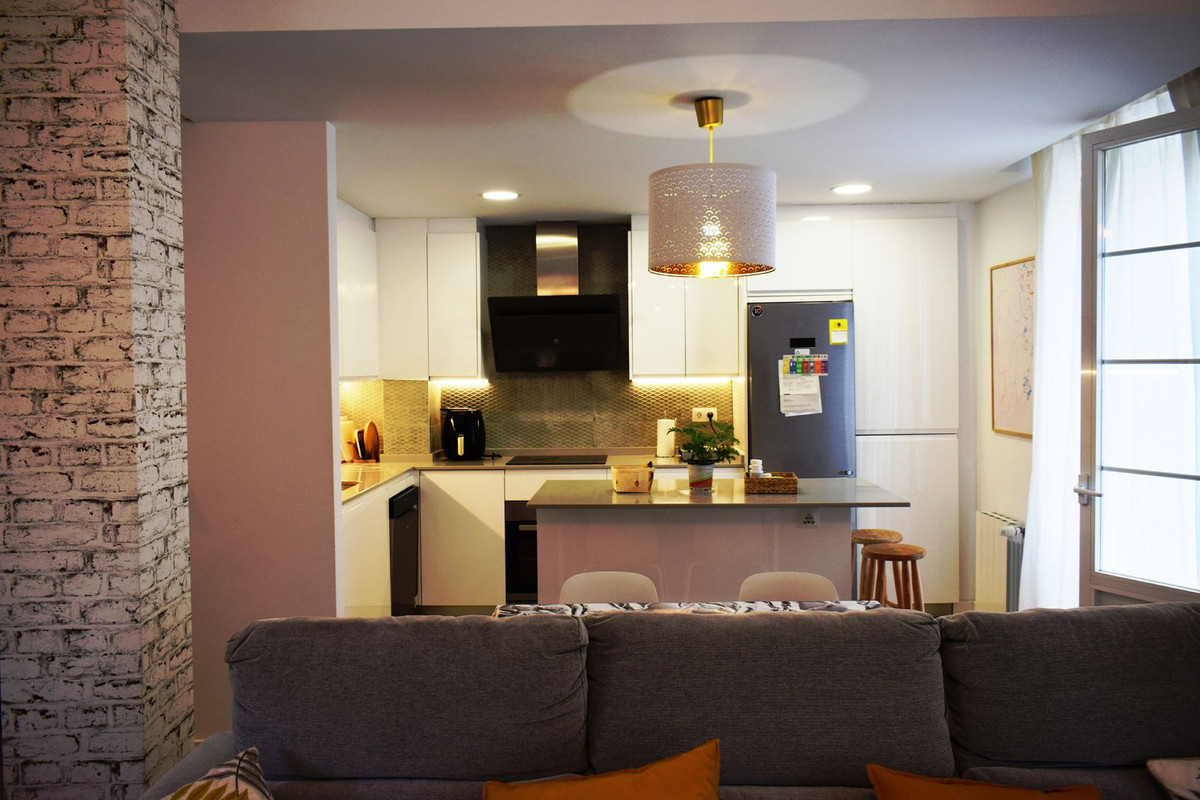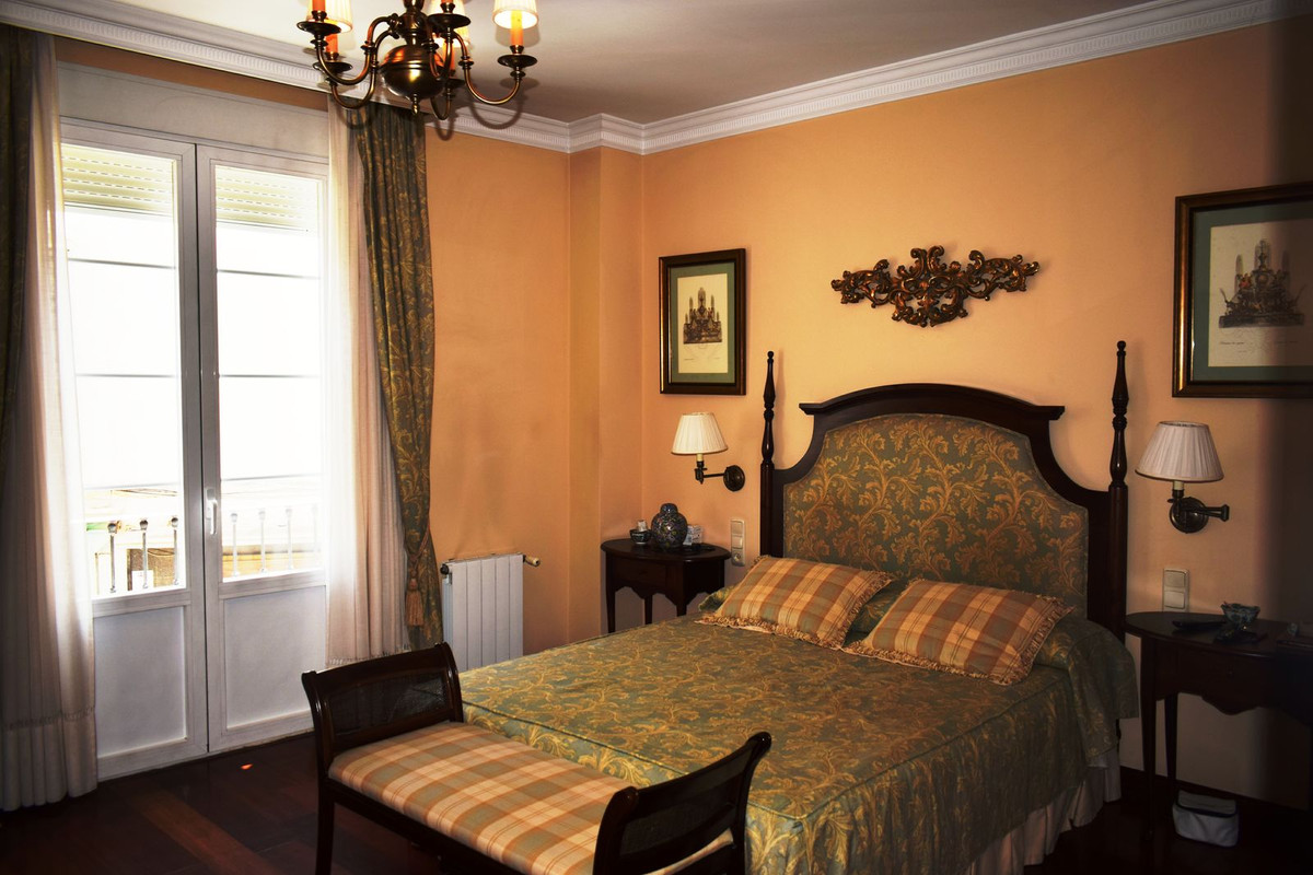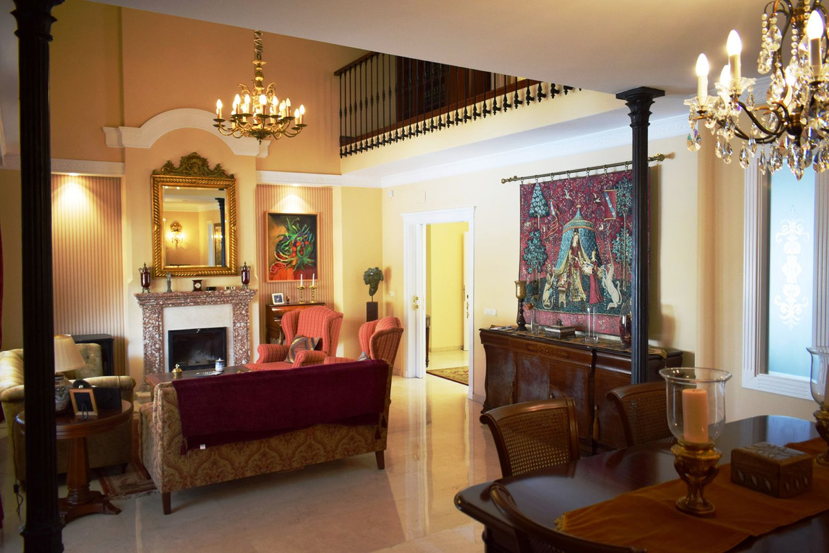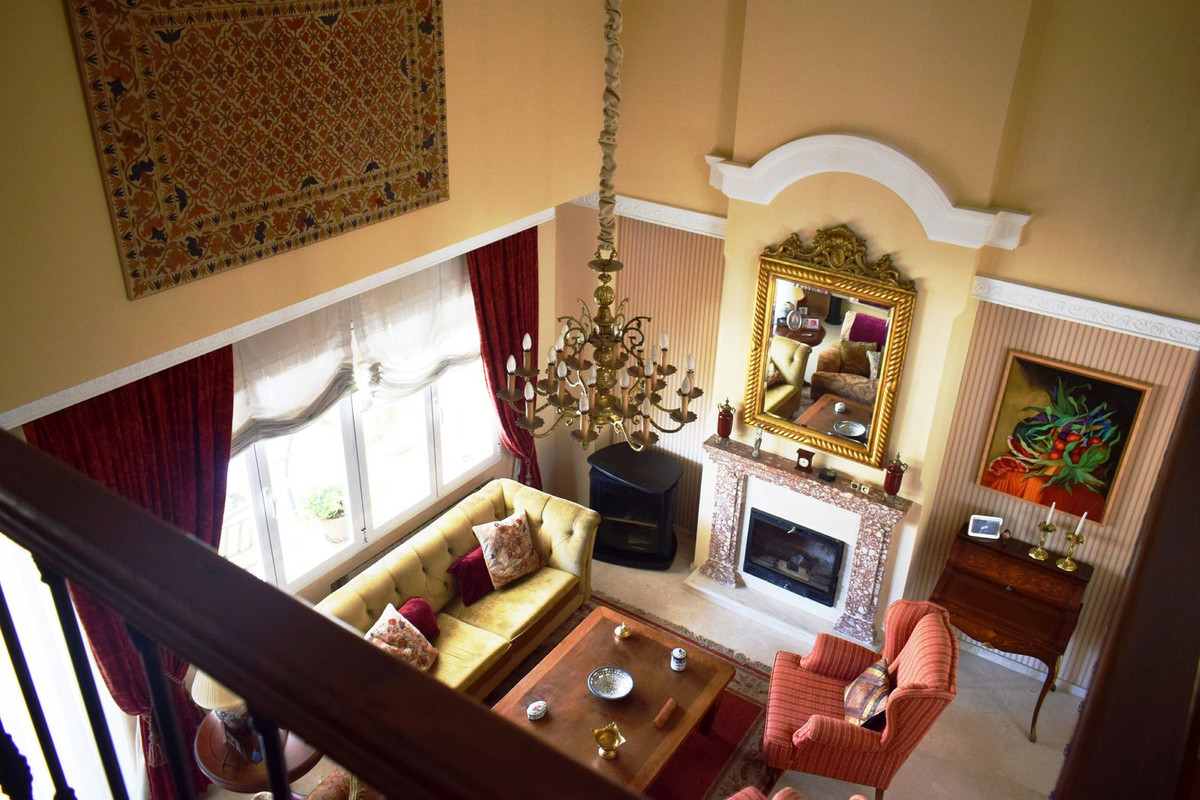 From the courtyard you can go up the magnificent stairs to the first floor, but there is also another access directly into the kitchen from here. The first floor comprises a large, fitted kitchen with dining area, large utility room with small courtyard, living room with fireplace, high ceilings and a mezzanine floor where the library is. There is also a separate smaller living room and the hall that leads you to the 3 double bedrooms, one of them with en-suite facilities and a walking wardrobe plus a separate family bathroom.