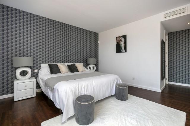 Frontline golf villa for sale in La Alquería, Benahavis, consisting of a living room with fireplace, a dining room, 4 bedrooms, 4 bathrooms, a fully fitted kitchen and terraces. Pool. Parking. Gym. Plot: 667m2. Sea and golf views.