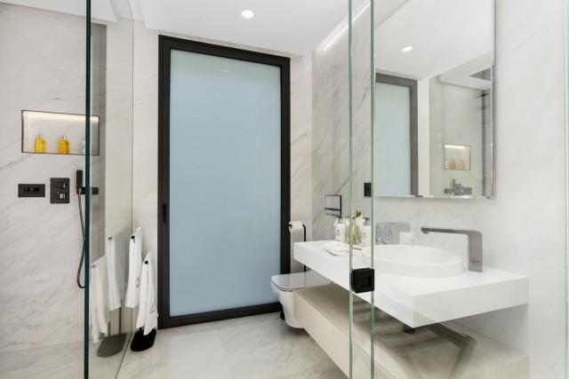 Stunning BEACHFRONT NEW Apartment for sale in Estepona. Located on the New Golden Mile and only 12 minutes drive to Puerto Banus, this brand new Frontline beach 4 bedrooms first-floor apartment in the top luxurious beachfront development. With spectacular sea views throughout and a south facing orientation, this spacious entrance, huge living and dining area, with open plan fully fitted kitchen (Porcelanosa) with Miele appliances. This beautiful luxurious apartment has a home automation system, access to the apartment with private elevator from the garage, A/C with cooling and heating, under floor heating and surround sound system with hiding speakers.