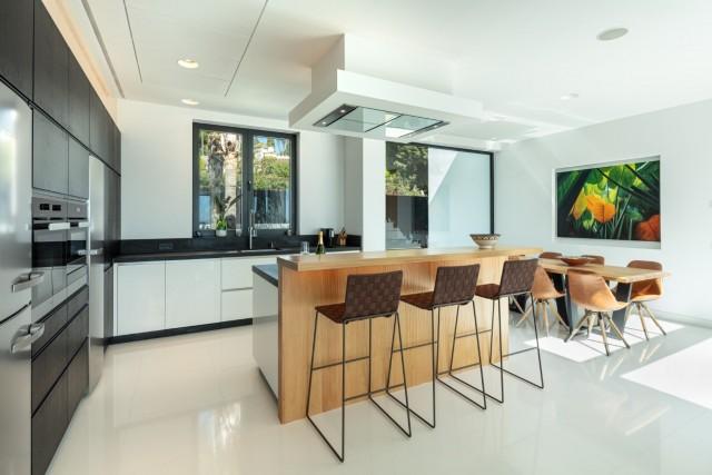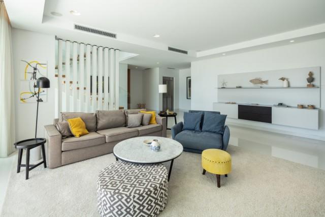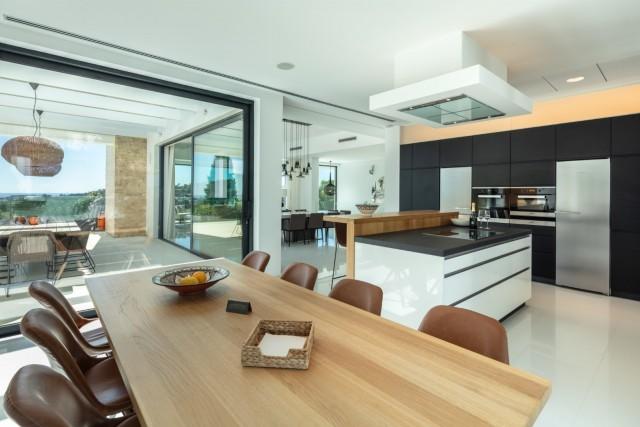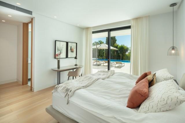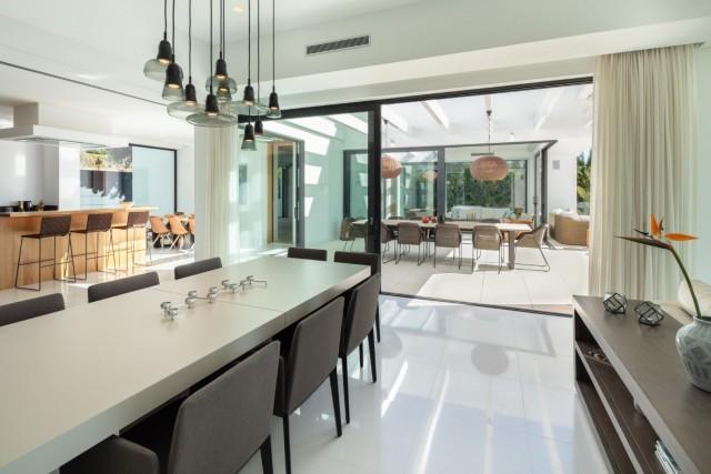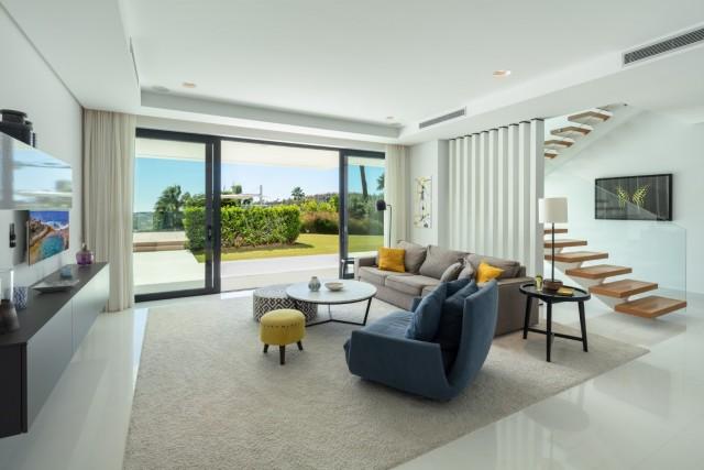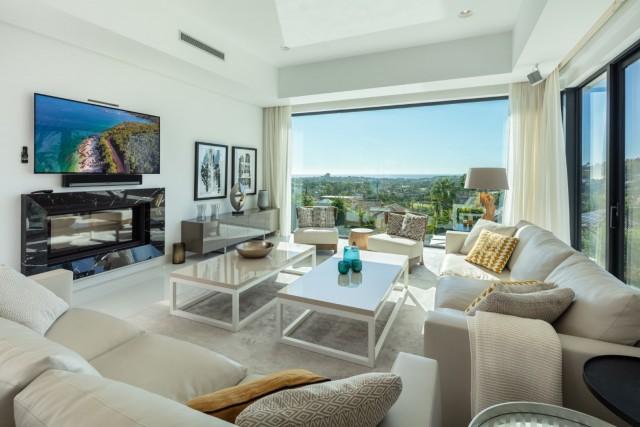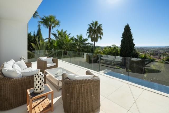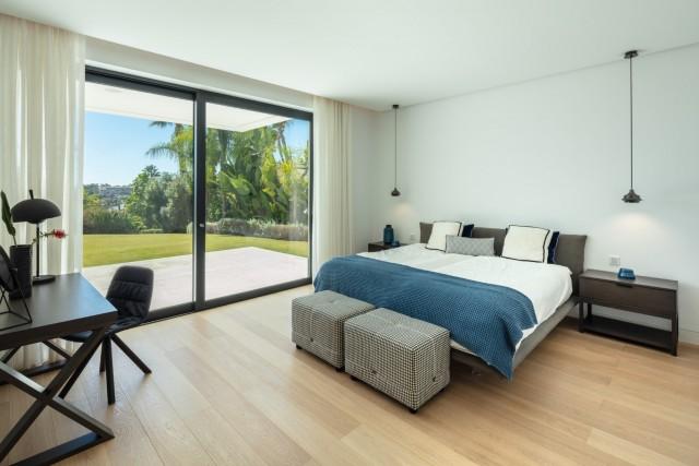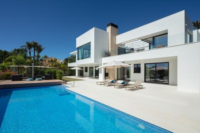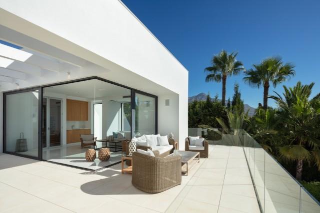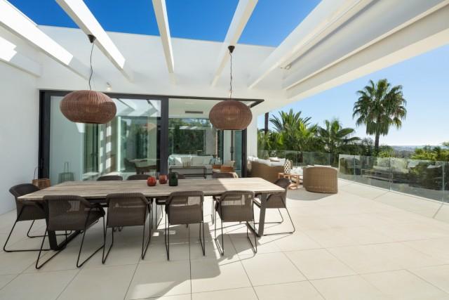 Beautiful Contemporary Villa for sale in Nueva Andalucia. Situated in the prestigious neighbourhood, nestled between three world-class golf courses, this contemporary masterpiece captures sweeping golf to sea views, and has been designed with high quality materials and finishes. A sophisticated entertainer's retreat, this 5-bedroom estate seamlessly integrates indoor and outdoor living while showcasing masterful and modern details. Floor-to-ceiling glass walls surround the living areas highlighting the property’s main attraction - breathtaking views of the surrounding nature.