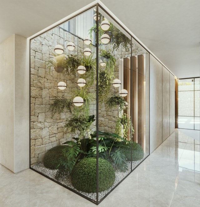 This 5 bedroom, 6 bathroom home sits on a plot of over 1000m2 with 652m2 of liveable space. Opening up to a spacious and bright living room area with beautiful custom-made wooden and marble designs and floor to ceiling pocket windows which allow plenty of natural light to shine through.