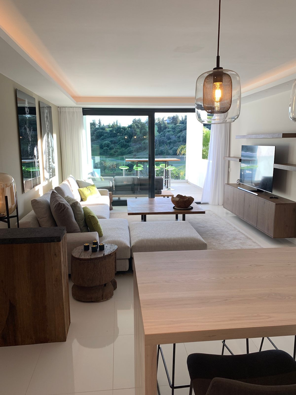 5* Luxury and contemporary middle floor apartment. The avant-garde architecture is designed by the famous architects Villarroel - Torrico @ Puente Romano Marbella. The setting is unique and just in front of Atalaya Golf ( 36 holes ) with unobstructed panoramic south orientated views, overlooking the golf courses, garden and parties sea view. Atalaya driving range is literally at your doorstep. The quiet and front golf location is unbeatable. Situated at the end of a cull the sack ( Atalaya Golf course and driving range ) between all-new luxury contemporary villa's in the exclusive secured urbanisation of La Alqueria - Benahavis, 6 minutes to Puerto Banus, 10 minutes to Marbella, 12 minutes to Estepona, 2 minutes to a very nice "Mercadona" supermarket and International School & College.