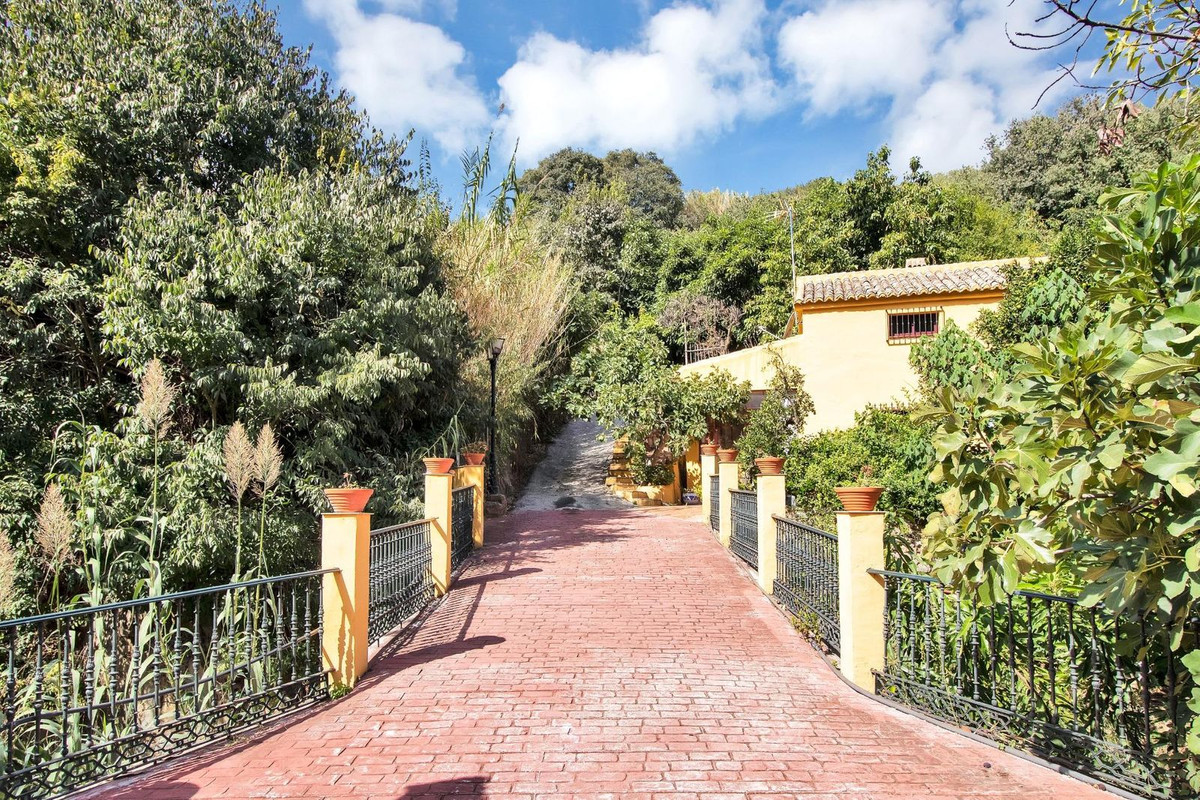 Country house with a total interior surface, in very good condition, with over 19,503 sqm of lush gardens and mature trees, completely gated. Ideal for a first or a second residence, one can enjoy there the peace and total privacy of a perfect green oasis. On top of that, Ojen, at the foot of the Sierra de las Nievas, is only a 20 minute drive from the centre of Marbella. The house itself, a mediterranean style that perfectly fits in the environment, is well manteined, in very good condition, and has two levels. On the ground level there is the living room with chimney and open plan kitchen, and a guest bedroom with bathroom. On the second floor there are two large bedrooms and one bathroom...Additionally, the property also presents:.- Main house: 157m2 (3 bedrooms 2 bathrooms). Secondary home of 60m2 (1 bedroom, 1 bathroom).- Swiming pool of 37 sqm with a spacious area around, and it has a side construction of 13 sqm that includes a bar and a bathroom.- BBQ area of 200 sqm.- Chapel of 15 sqm meters for private ceremonies or meditation. - Bridge that crosses two streams with water all year round.- Private fountain and spring.- Private pinewood. Direct Access to "Ojen Ponds", an outstanding tourist attraction spot.- Economic exploitation of fruit trees, avocados, oranges, figs and mangos.- At present the property is rented as short term touristic rentals, celebration of events and selling of agricultural production. Offers also the possibility of reactivating the vineyard.