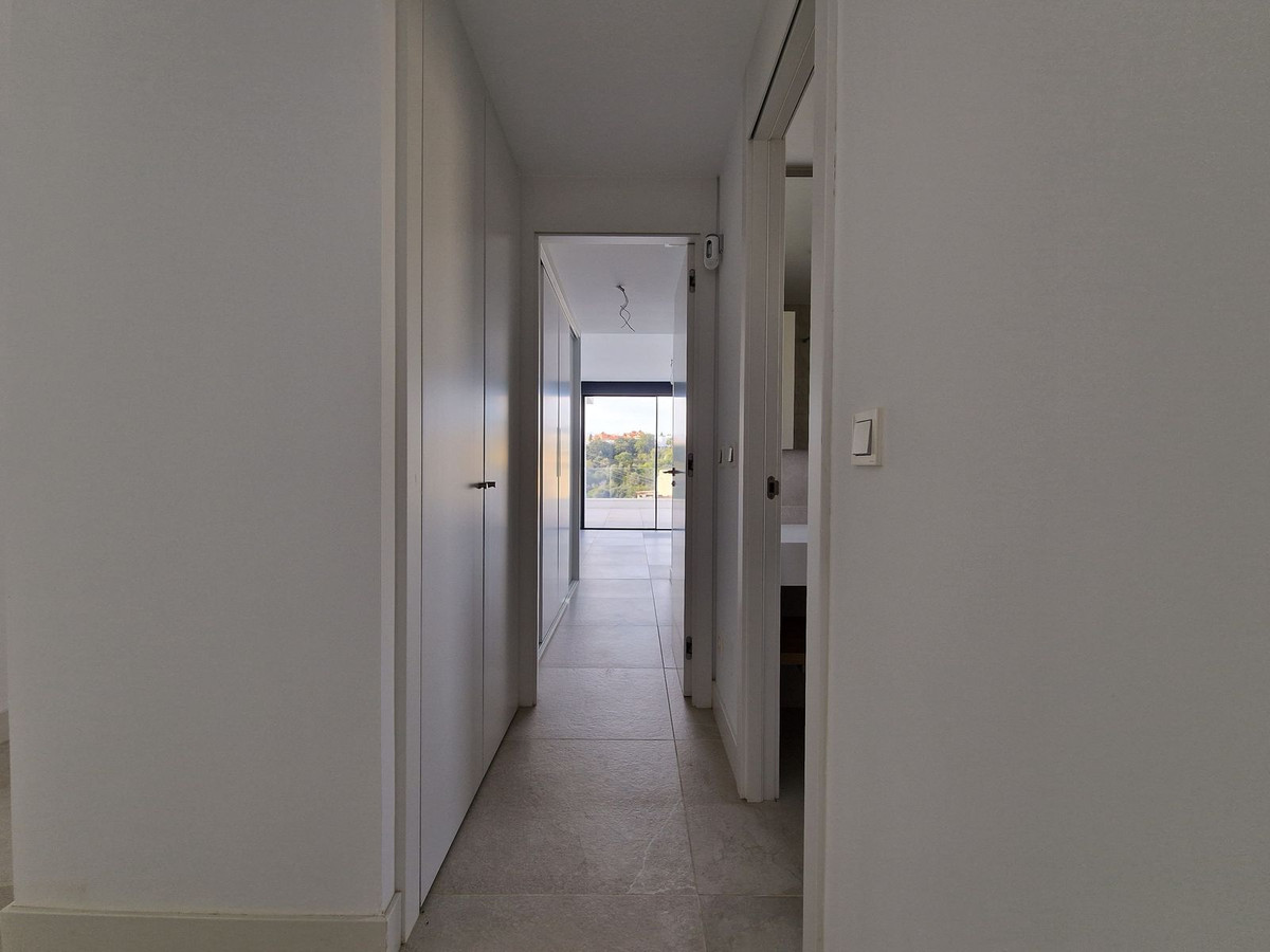 Urb. Artola Homes!!! Discover the charm of this 2-bedroom luxury apartment nestled in the coveted enclave of Artola, just a delightful 20-minute stroll from the beach. The main allure of this residence lies in its prime location in a luxury complex boasting a gym and indoor pool. As you step inside, a discreet laundry room to your right, provides ample shelf-space for linen and the washing machine and tumble dryer. The 2 bedrooms are all conveniently located ahead of you (one of which is ensuite), and the kitchen/dining area is immediately to your left, leading out to the spacious terrace. The apartment is equipped with an energy-efficient heat pump system that bestows hot or cold air according to your needs. Both bathrooms also have underfloor-heating. Easy access to the rooftop terrace, where you can enjoy the sun throughout the year. Parking is a breeze with not one but two dedicated spaces – an indoor space for your vehicle and an outdoor convenience for guests. This flat is nestled within a secure gated complex, granting you exclusive access to a cutting-edge gym for your fitness pursuits. Step into the outdoors to find a spacious pool area, perfect for unwinding in the Mediterranean sun. For those cooler days, retreat to the heated indoor pool.