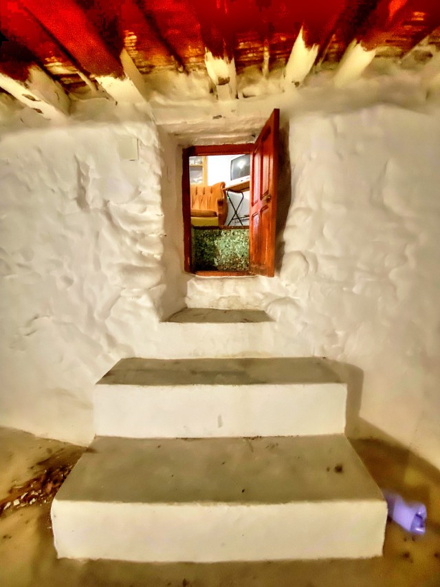 As you enter the house, you are greeted by two spacious living rooms, one of them with a warm fireplace that invites evenings by the fire on cooler nights. From one of the living rooms, a discreet door leads to an impressive cellar, which once was a stable, and now unfolds into two spacious rooms with direct access to the street, ideal for your most creative projects or as storage area.