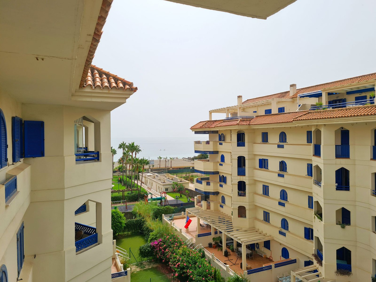 With an excellent location, this apartment is located in a beachfront development in San Luis de Sabinillas, directly connected from the common areas to the beautiful coastal path that connects the entire Costa del Sol. It is close to parks, supermarkets, restaurants, and a health center. Just 90 minutes by car from Malaga Airport and 35 minutes from Gibraltar Airport, making it ideal as a permanent or second home. The property features a spacious entrance hall leading to the large living-dining room that leads to the terrace with beautiful side sea views. It also has a spacious, well-maintained, fully equipped separate kitchen with a laundry room. From the hallway, we find a full bathroom with a shower, the master bedroom with a large built-in wardrobe and a large en-suite bathroom with a bathtub, and the second bedroom with a built-in wardrobe. The property has a parking space, and enjoys the communal pools and gardens. WE RECOMMEND A VIEWING!