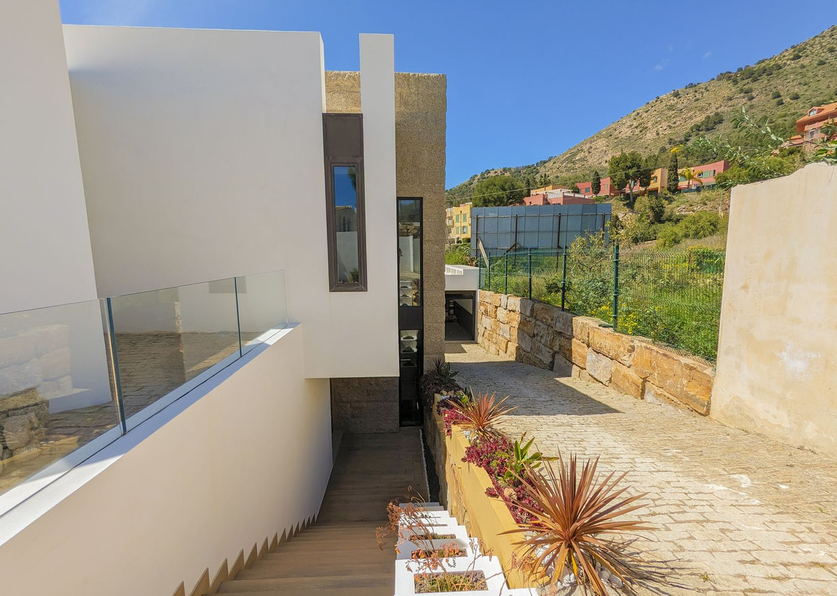 Wonderful brand new luxury villa, in one of the most sought-after areas of Benalmádena, in the heart of the Costa del Sol. This incredible property has an eight hundred meter garden, with an infinity pool where you can enjoy the warmth and sun of summer.On the first floor we will be greeted by the enormous living room with a fireplace and a door with access to a 150-meter terrace. The master bedroom has its own bathroom en suite and an unparalleled large dressing room.Upon going up to the second floor we will We will find two bedrooms and a bathroom. In the basement we can get in shape with the gym. Without leaving us the garage for two cars included in the property. This home will not leave us immune to its beauty, the luminosity and the energy of a job. well done. The panoramic views will lead us to the majesty of the sea and the mountains.