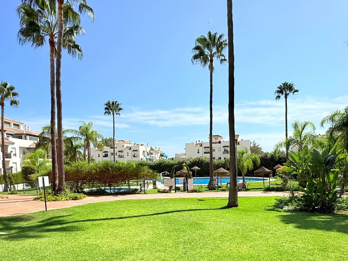 The property is part of a well-maintained, peaceful residential complex with expansive green areas and a magnificent communal swimming pool – perfect for relaxing and soaking up the Costa del Sol climate.