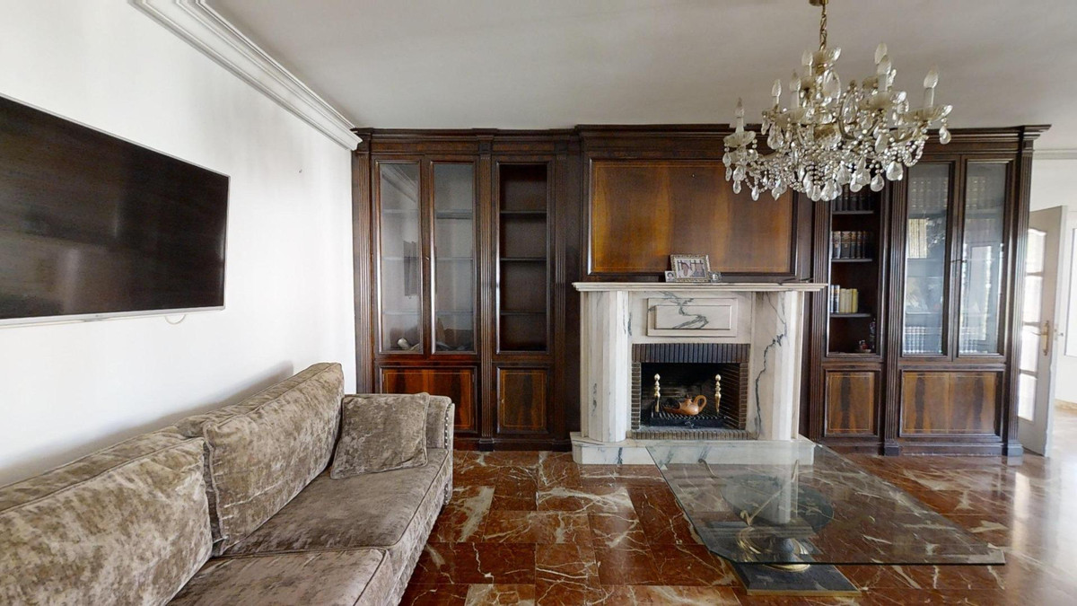 Large living-dining room with fireplace, a cozy and elegant setting for family gatherings and entertaining.
