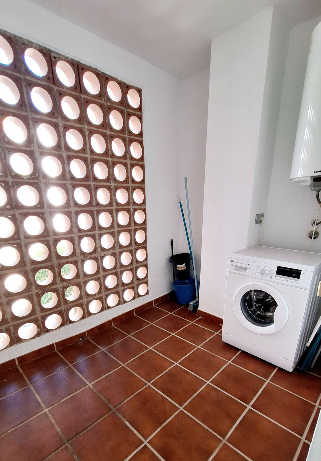 The property has a spacious, fully equipped kitchen, as well as a practical separate laundry room. The modern and cosy living-dining room connects directly to a large private terrace with panoramic sea views, perfect for enjoying unforgettable sunrises.