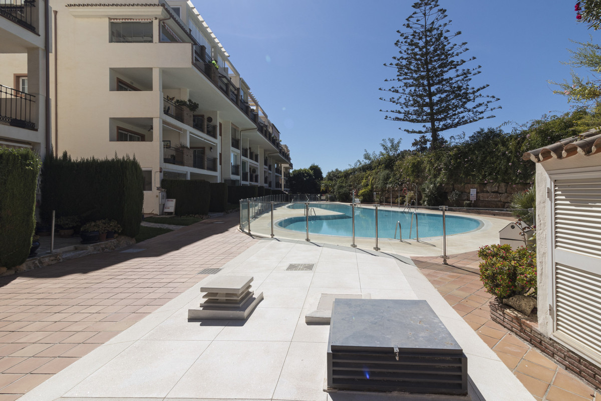 Enjoy a peaceful setting, overlooking a beautiful garden and the communal pool, and a southwest orientation that guarantees natural light throughout the day, creating a warm and welcoming atmosphere. Every corner of this property has been carefully designed with top-quality access, from its marble floors to the air conditioning that ensures your comfort year-round.