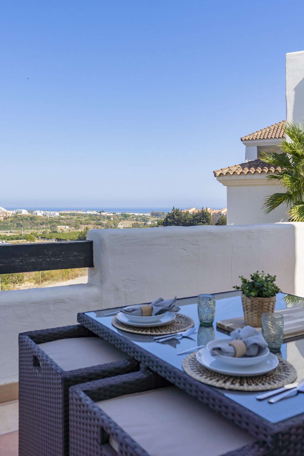 Welcome to this stunning first-floor apartment with a spacious terrace and a private jacuzzi, located in a secure gated community in the highly sought-after Selwo area of Estepona. From the terrace, you can enjoy breathtaking panoramic views of the sea and surrounding mountains every day – perfect for relaxing moments and unforgettable sunsets.