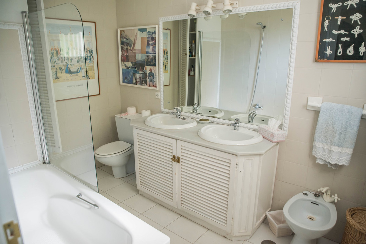 On the entrance level you can find the living room and dinning area, kitchen, one guest toilet, 2 en-suite bedrooms and 2 other bedrooms that share a bathroom. There is also a guest apartment with separated access.