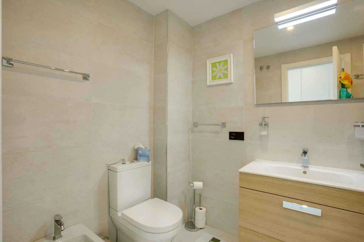 The bedroom wing of the apartment features four spacious double bedrooms, all with fitted wardrobes and electric shutters. The master suite includes an elegant en-suite bathroom, while two additional modern bathrooms serve the remaining bedrooms.