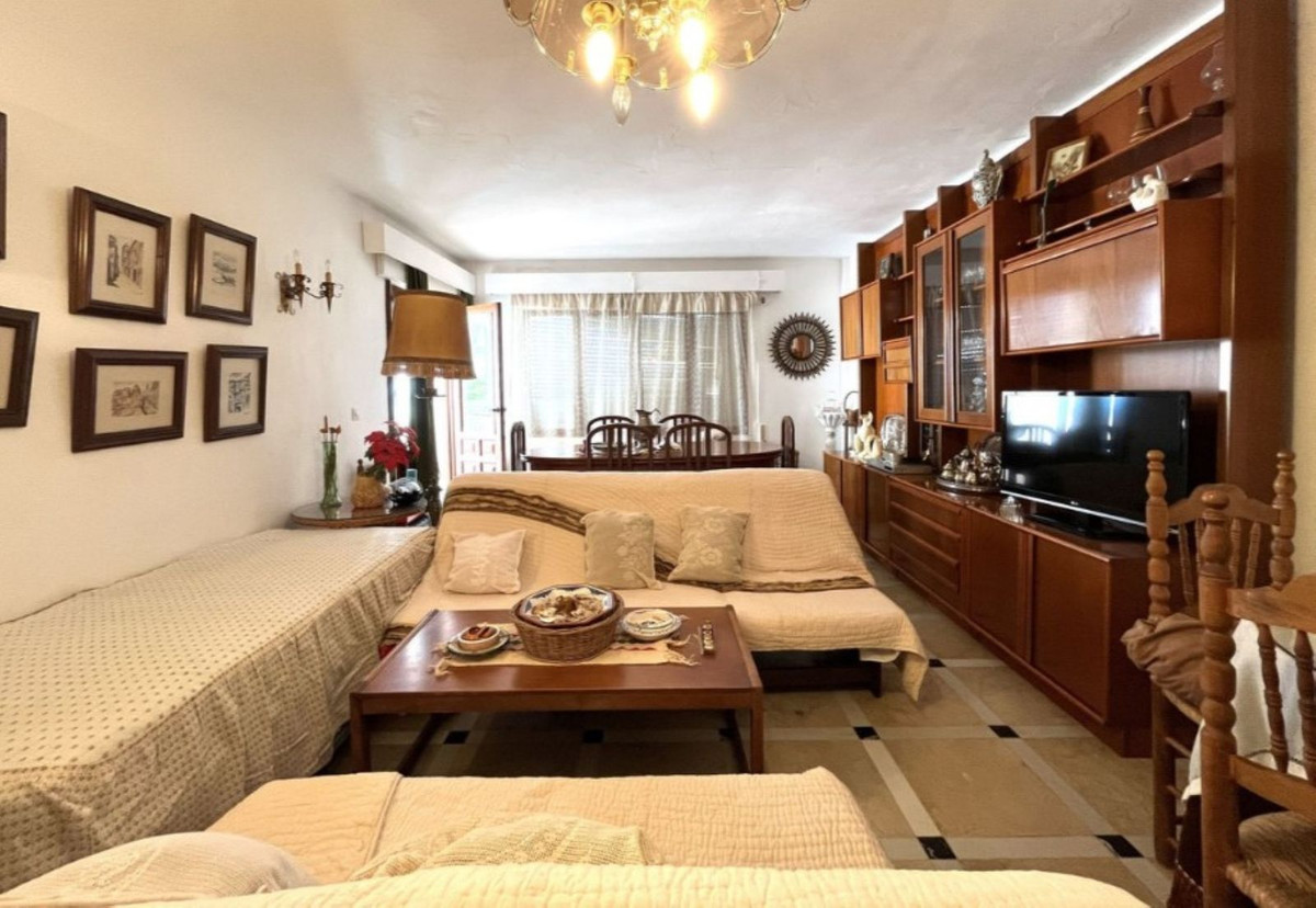 Apartment in the Puerto Deportivo area of Estepona, with stunning panoramic views, in a well-known urbanization with gardens, swimming pool, parking, surrounded by all kinds of services such as restaurants, bars, shops and just a 5-minute walk from Cristo beach. The apartment consists of 3 good-sized bedrooms, two bathrooms, living room, kitchen, laundry room, and closed terrace with Lumon. Great investment opportunity, the property needs complete refurbishment. Don't miss the chance for a great investment, come and see it.