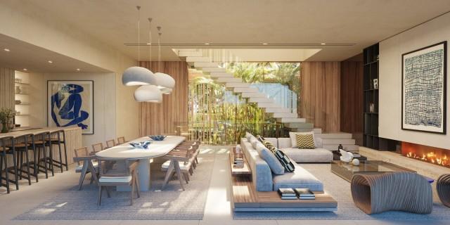 This is a masterpiece of contemporary architecture located in the prestigious Lomas de Marbella Club on Marbella’s Golden Mile. Built across 1,460 m² on a 1,010 m² plot, this 5-bedroom residence embodies a perfect balance between elegance, privacy, and Mediterranean serenity. Designed with wood and stone as its main elements, the home exudes an organic warmth - giving the inside a sense of green tranquility and the outside a calm, natural harmony.