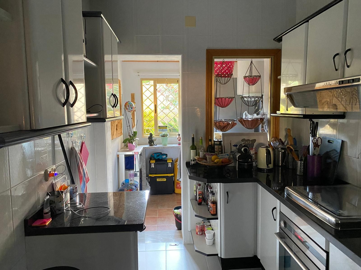 Fantastic semi-detached house in TORREQUEBRADA, in the best area of ​​Benalmádena, in a residential development. Before entering the house, there is a small and charming garden where you can sunbathe in the afternoons. Upon entering, you enter the spacious living room with a marble fireplace that adds style and warmth, perfect for enjoying moments of relaxation. It is connected to the fully equipped kitchen by a serving hatch and a laundry area with a window. There is also a toilet on this same main floor. This home is bright as it faces east and west (morning and afternoon sun). Air conditioning and a heat pump are provided. The living room has access to a covered terrace and connects to another terrace that leads down via a staircase, where you can relax, sunbathe, and enjoy barbecues with family and friends. On the upper floor, you will find two exterior bedrooms. The master bedroom is very spacious, with a full en-suite bathroom, built-in wardrobes, and also has a terrace with beautiful panoramic views. The second bedroom is also spacious and has an en-suite bathroom. The community grounds, closed by an automated gate, offer parking for several cars. The development offers a large communal pool (semi-Olympic size, open all year round), lawns, and tropical gardens. The gardener cares for the private and communal gardens, which are included along with water usage, in the monthly community fee. The development is located in a quiet, well-connected residential area. Ideal for golf lovers, as it is very close to one of the best golf courses on the Costa del Sol (TORREQUEBRADA GOLF). Torrequebrada is home to several schools and hospitals, and is just 2 km from the beaches and several supermarkets in the area. VISITS RECOMMENDED!