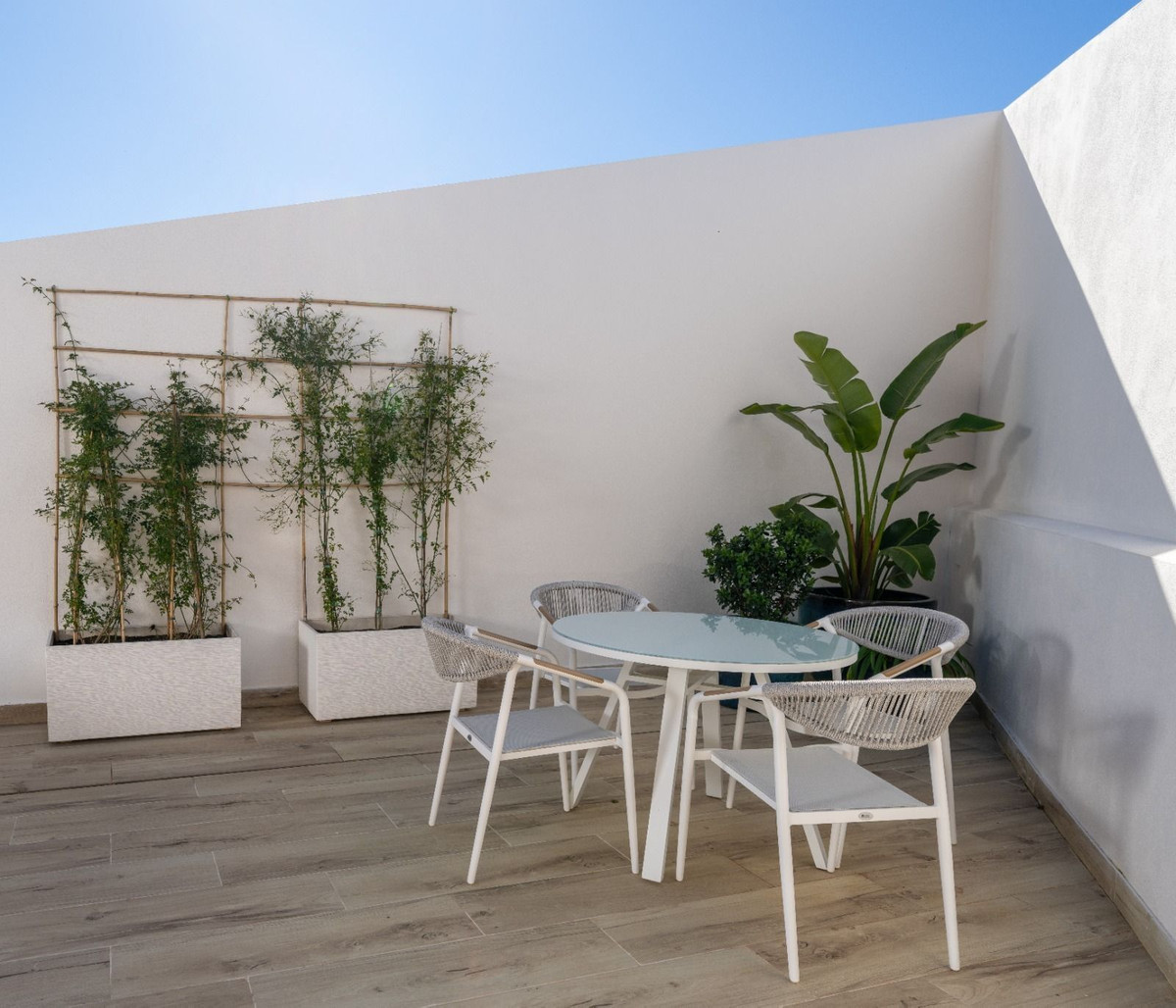 The property features 3 bedrooms and 2 bathrooms (one en-suite), with a built area of 100 m² and a 20 m² south-facing terrace, perfect for enjoying the sun and the views. The condition is excellent, with modern, high-quality finishes, and it belongs to a new and secure gated community.