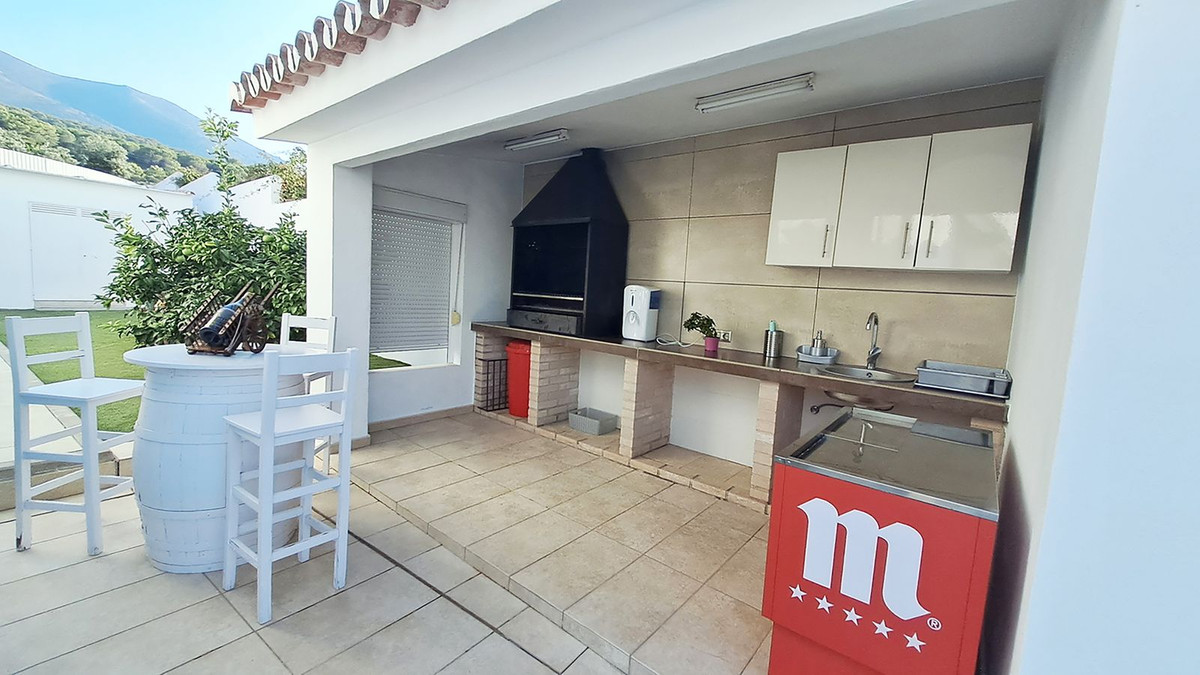From the covered terrace, you have access to the beautifully maintained garden with a 50m² swimming pool, outdoor kitchen, bar, shower room, etc., where you can enjoy the impressive panorama of the surrounding countryside and mountains all the way to the bay of Malaga in complete tranquillity.